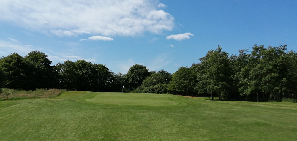 Highlight ist das 51 Meter lange Grün, das in drei Höhenstufen angelegt ist. Wenn die Fahne ganz hinten oben steht, können drei Schläge aufs Grün bereits theoretisch ein Problem sein.
