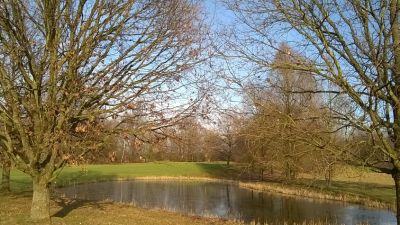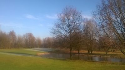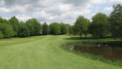 Der Abschlag einfach geradeaus auf das Fairway wäre kein Problem, wenn der Teich rechts vom Fairway nicht eine so große Anziehungskraft für Golfbälle hätte.
