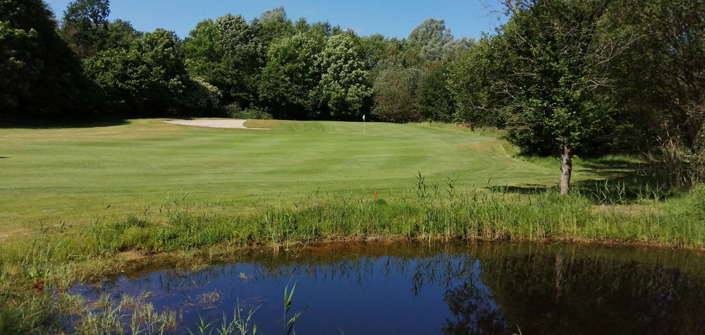 Die kürzeste Bahn im Hünxerwald. Das Grün sollte eigentlich jeder mit einem Schlag erreichen können. Deshalb findet auch hier sehr häufig in Turnieren der Nearest-to-the-Pin Contest statt.