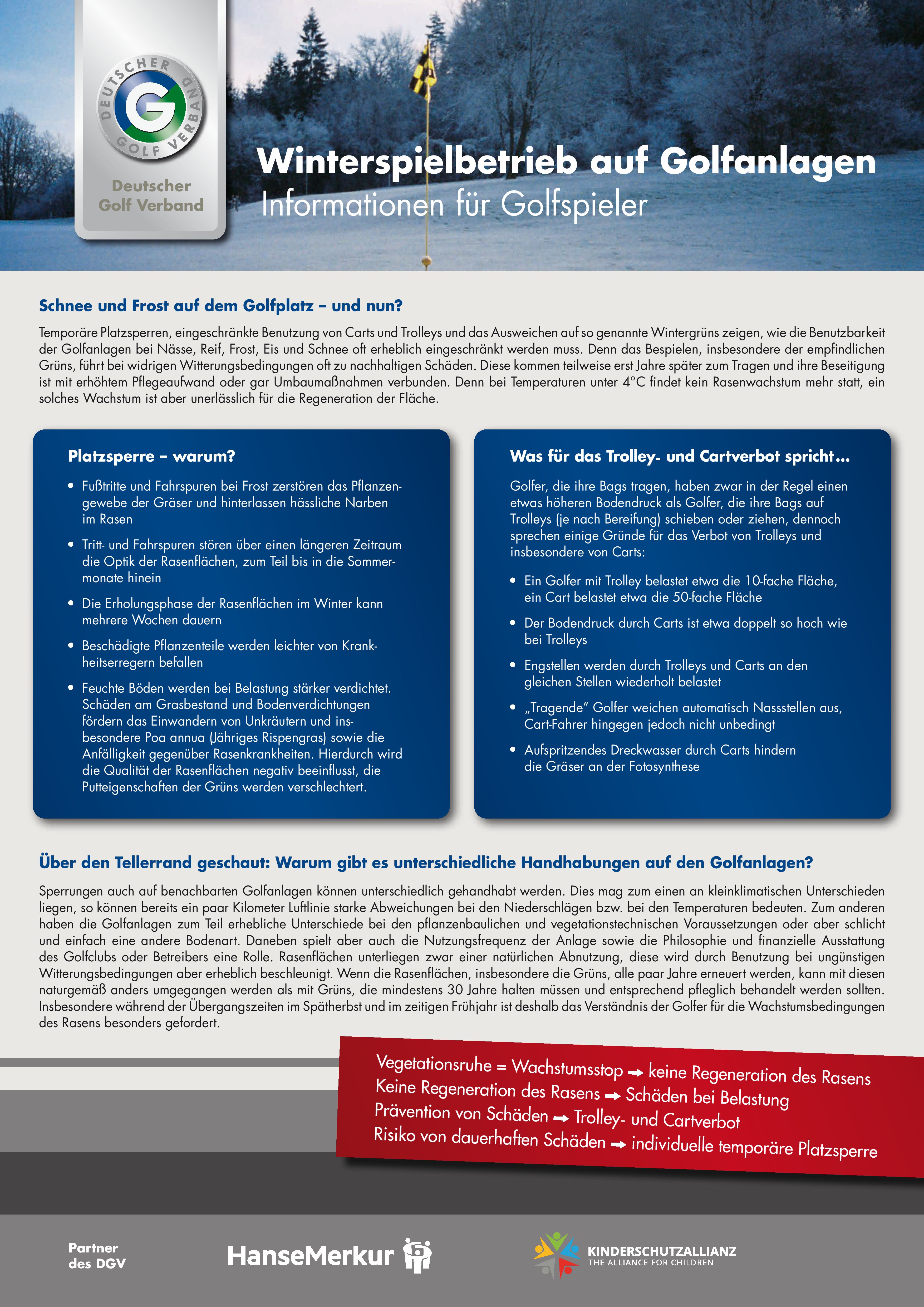 Eine recht interessante und lesenswerte Zusammenstellung über den Winterspielbetrieb auf Golfanlagen, herausgegeben vom Deutschen Golfverband, haben wir zusätzlich beigefügt.