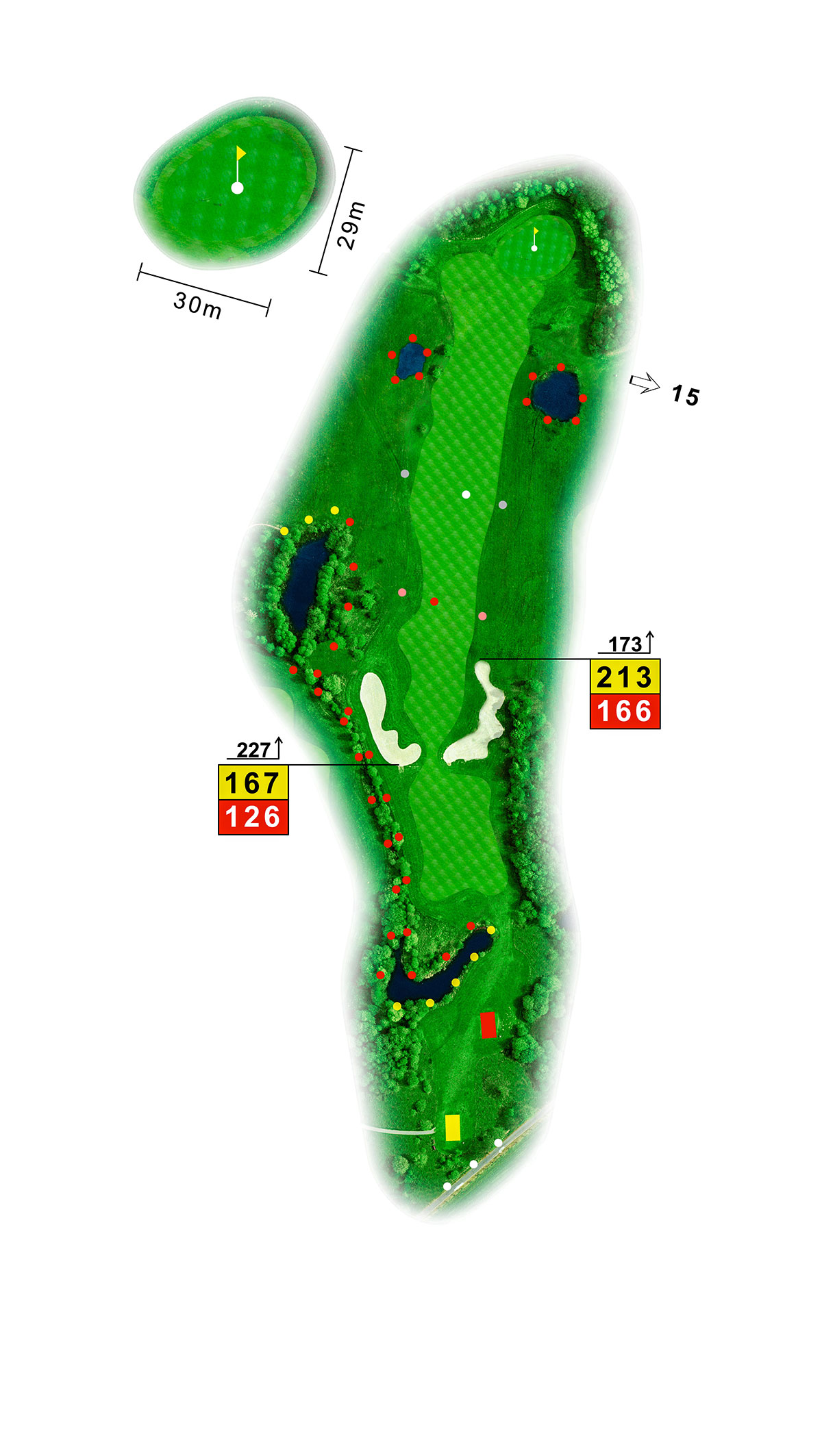 Seien Sie gespannt auf den Annäherungsschlag auf das Inselgrün der Bahn 15. Riskieren Sie den Schlag mit dem Driver auf das gut geschützte Grün der Bahn 3 oder spielen Sie konservativ den Weg über das Dogleg zu einem Par an der Bahn 1.