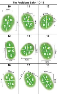 Die Pin-Sheets teilen jedes Grün in 4 Sektoren (A/B/C/D).