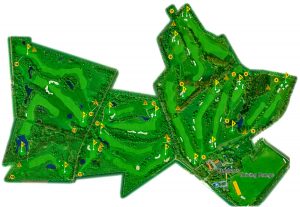 Zusätzlich sind pro Loch Grün-Abmessungen (in Metern) angegeben.