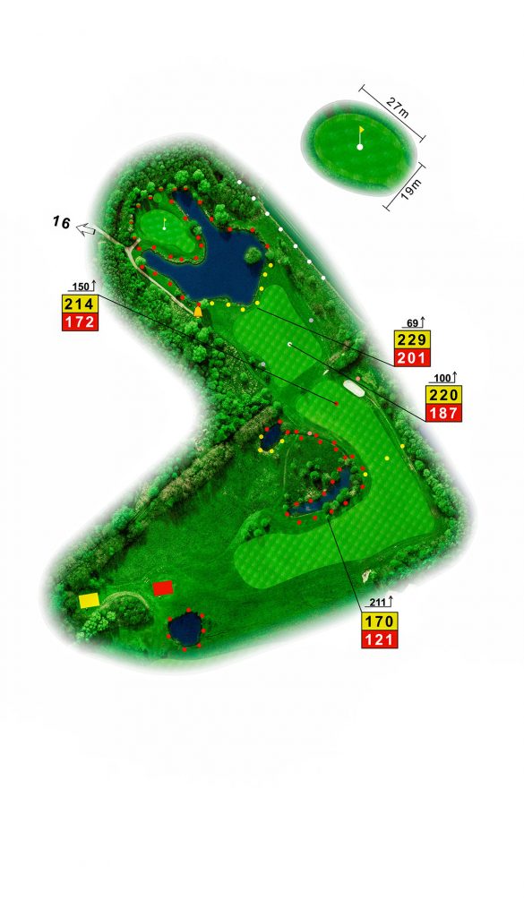Mutige Longhitter versuchen nach dem Motto: Sekt oder Selters einen Abschlag direkt vor das Wasser. Ein schwerer Schlag, aber eine klare Eagle-Chance wenn er gelingt. Viel Erfolg.