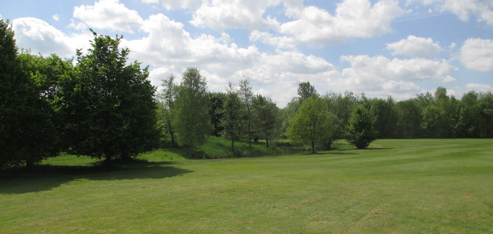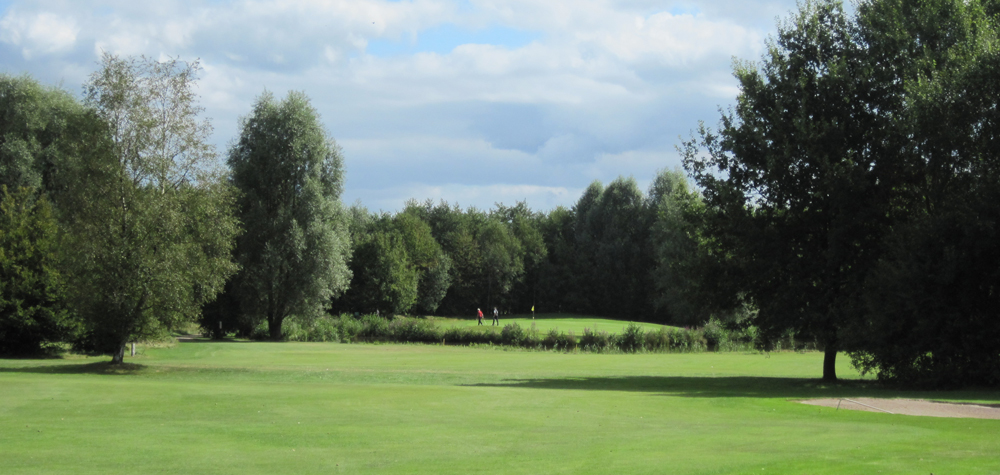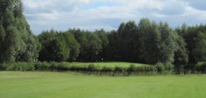 Man kann auch vom Abschlag aus direkt Richtung Bunker spielen. Es ist allerdings schwierig den Ball auf dem Fairway zum Halten zu bekommen und er landet dann im Bunker oder in der Baumgruppe.