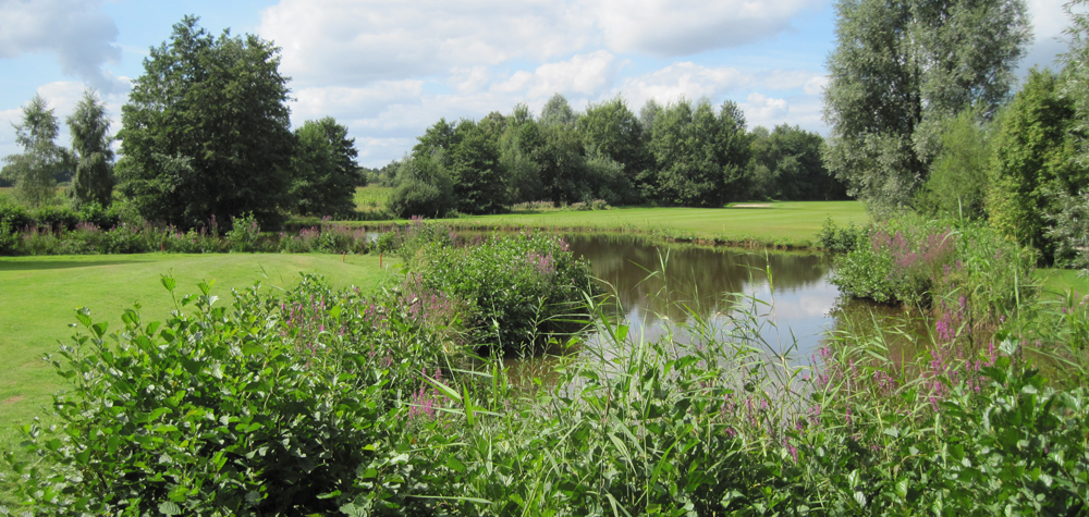 Für Golfanfänger ist der Teich vor dem Grün in etwa so groß wie der Atlantik. Vorlegen bis zum Wasserrand ist hier die Devise. Und dann die Angst überwinden. Viel Erfolg.