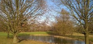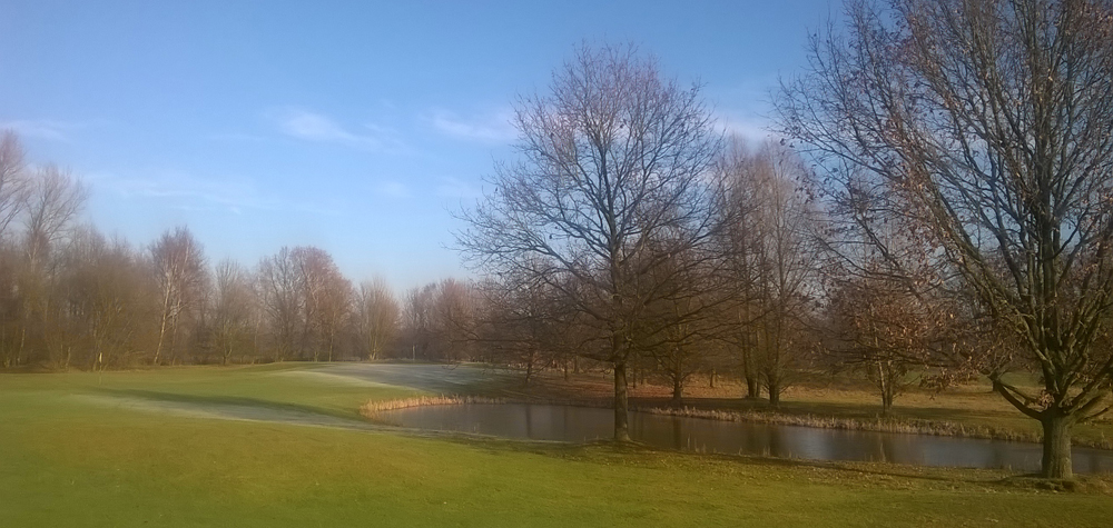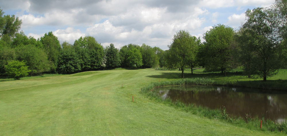 Der Abschlag einfach geradeaus auf das Fairway wäre kein Problem, wenn der Teich rechts vom Fairway nicht eine so große Anziehungskraft für Golfbälle hätte.