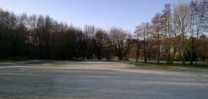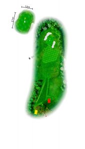 Bei dem Versuch der linken Baumreihe fern zu bleiben, landen viele Bälle entweder im rechten Grünbunker oder sogar in der Baumreihe hinten rechts.